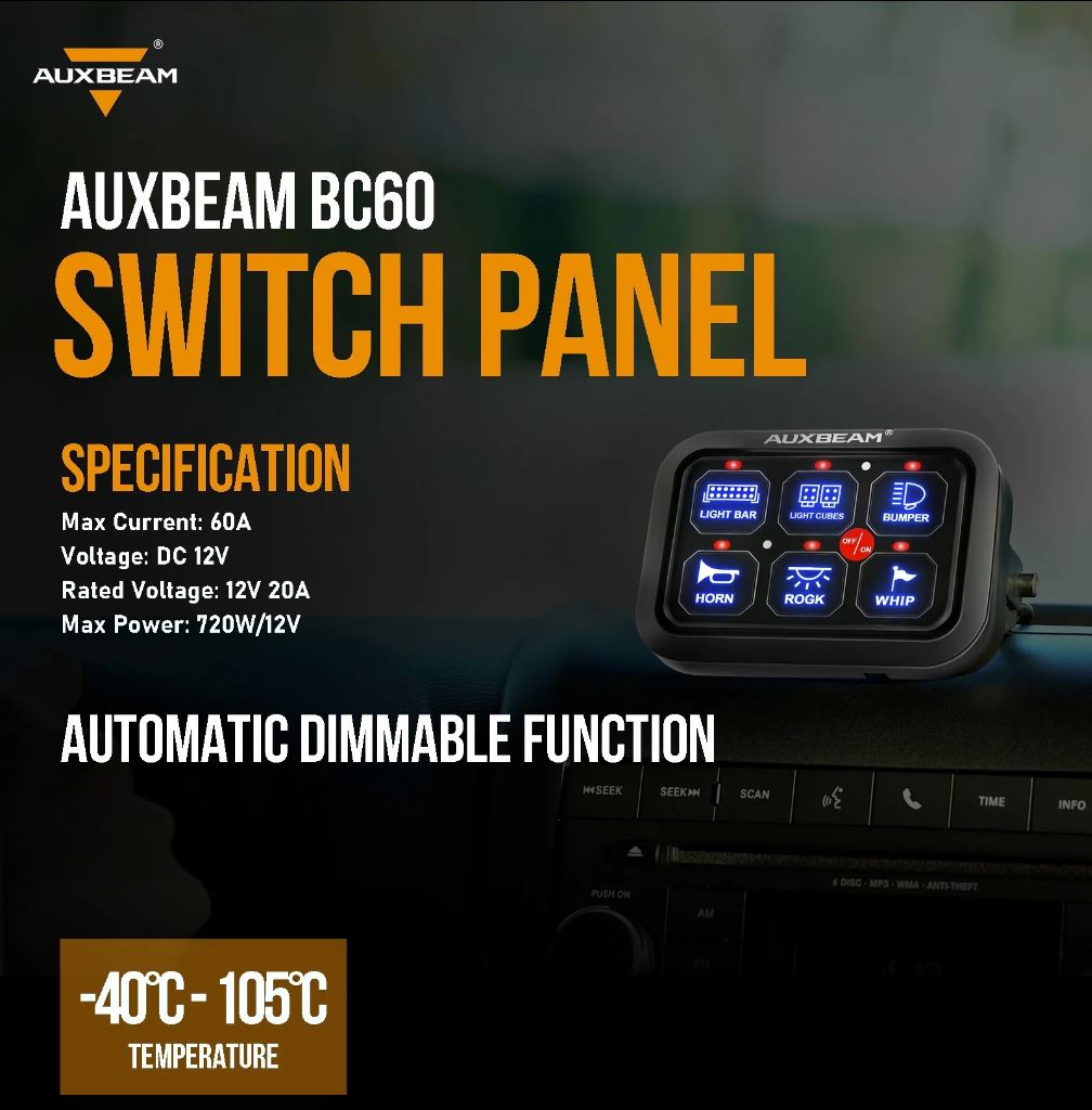 - Universal 6 switch panel relay system. Power up to 6 lights or accessories from one convenient place.