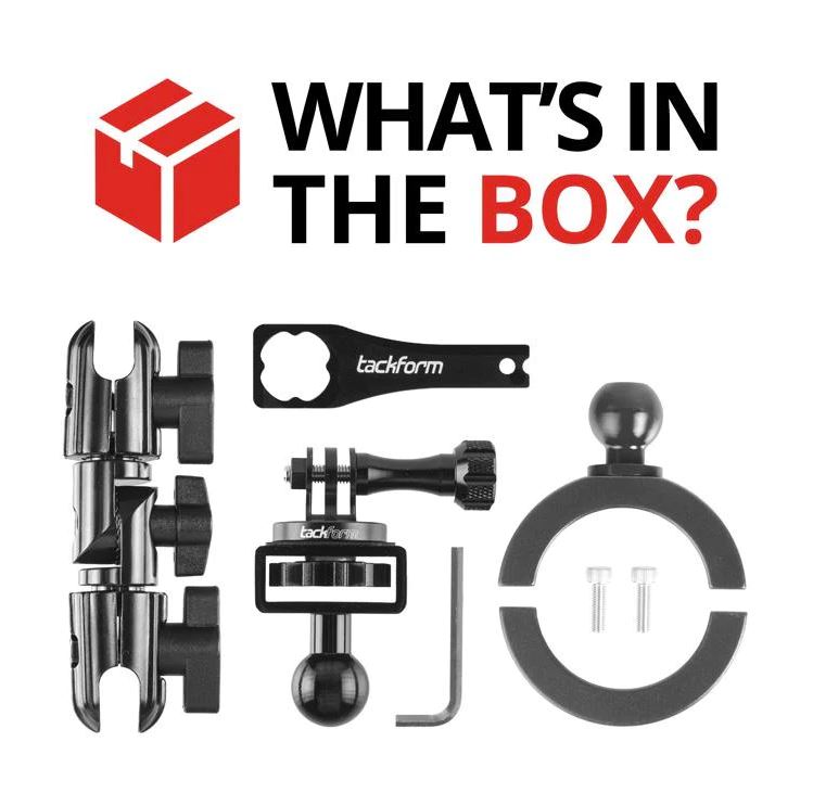 Rock Solid Adjustable Arm - An all-aluminum arm equipped with dual omnidirectional locking ball joints and a locking elbow joints allows for the perfect filming angle. Arm length between ball joints is 4". No plastic parts means minimal vibration and great footage.